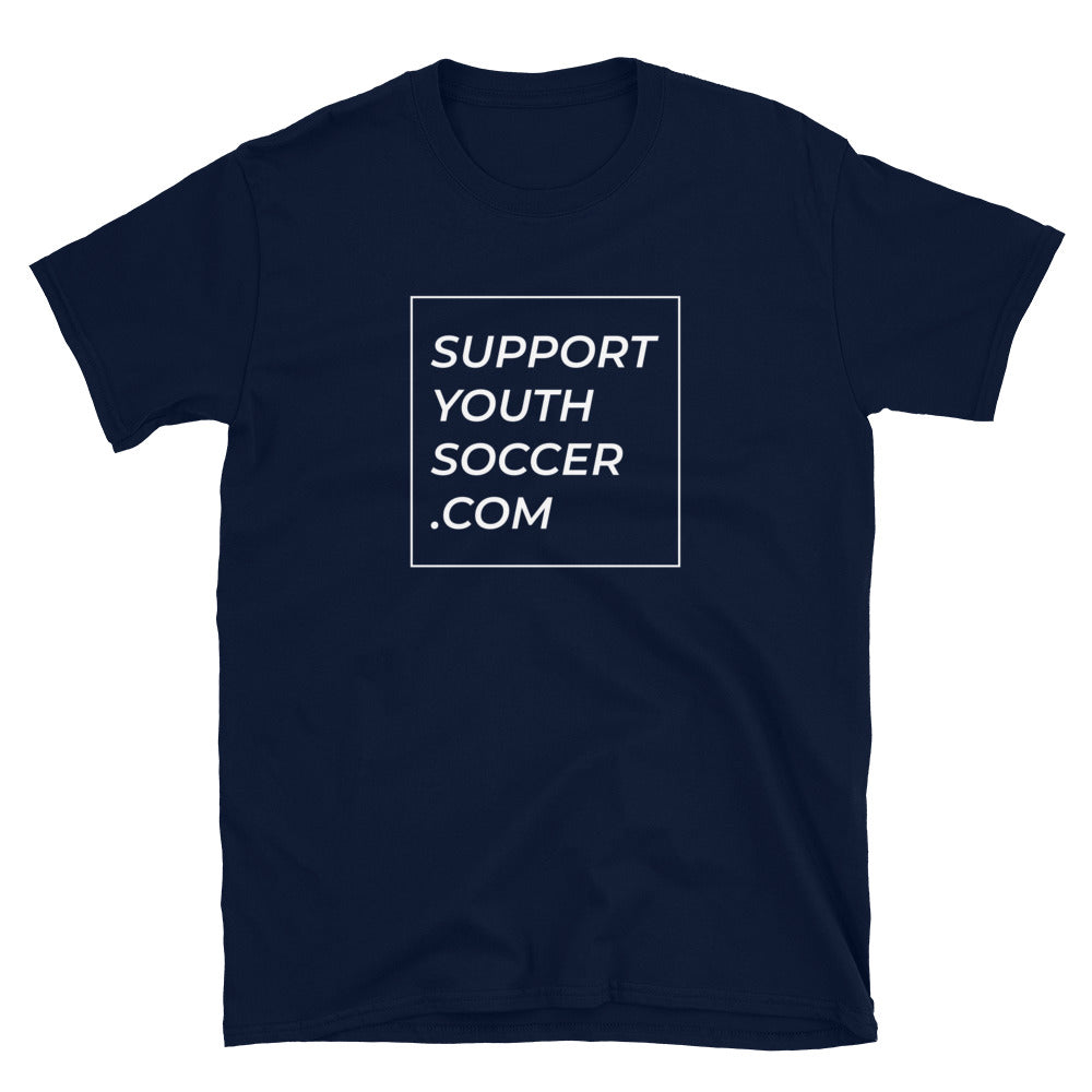 Show your support for youth soccer with this t-shirt that is sure to become a favorite. It's made of 100% ring-spun cotton and is soft and comfy. The double stitching on the neckline and sleeves add more durability to give you long-term wearability!